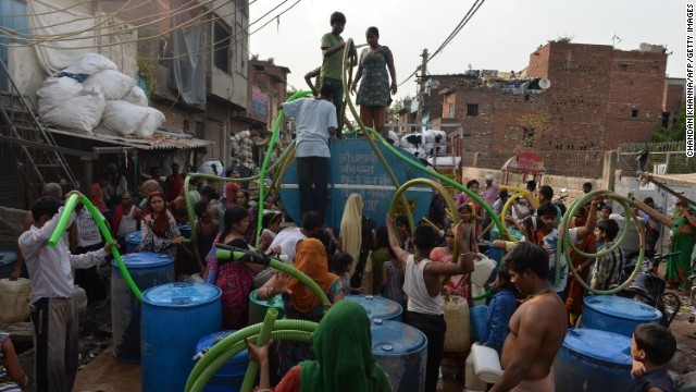 Lebih parah lagi, di lingkungan New Delhi, suhunya mencapai 45 derajat Celcius. Setiap harinya, masyarakat mengantri, berbondong-bondong membawa jerigen, botol, menunggu truk pengangkut air milik pemerintah.