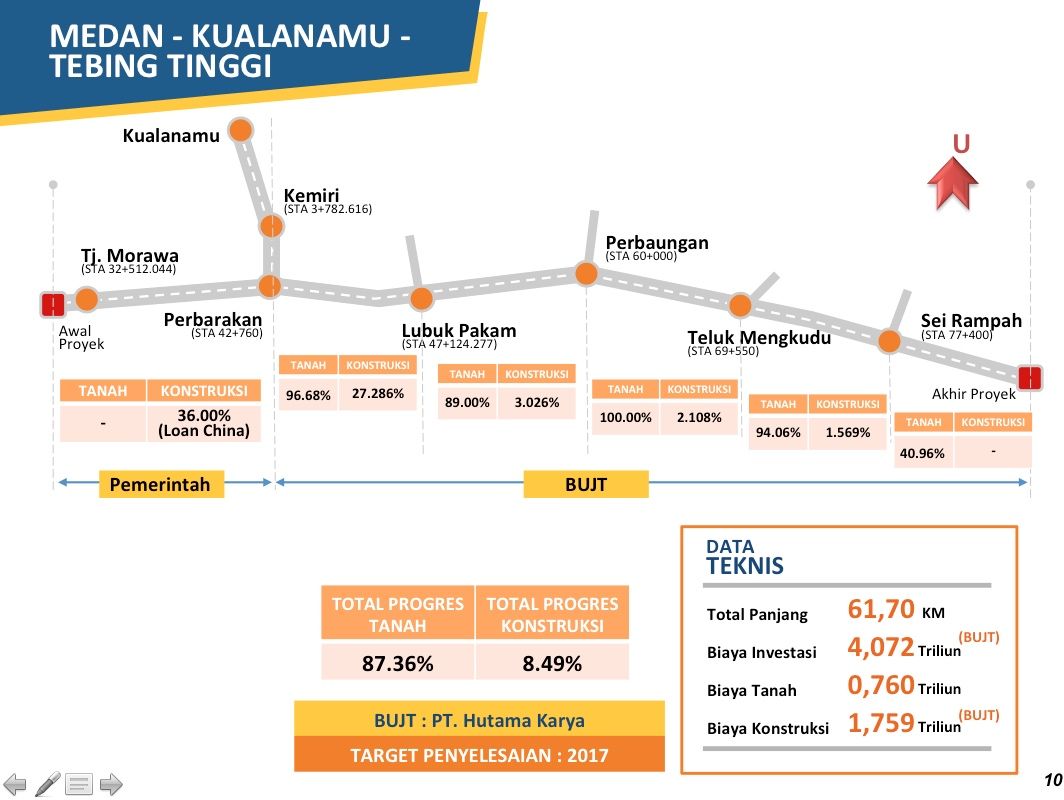 Jokowi berharap, tol ini sudah rampung pada 2017 sehingga bisa beroperasi di 2018. Jalan tol ini dibangun menembus hutan di Sumatera Utara (Sumut).