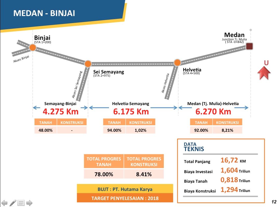 Ruas tol tersebut merupakan bagian dari mega proyek Tol Trans Sumatera. Tol Medan-Binjai sepanjang 16,72 km ini membelah hutan sawit di Sumatera Utara.