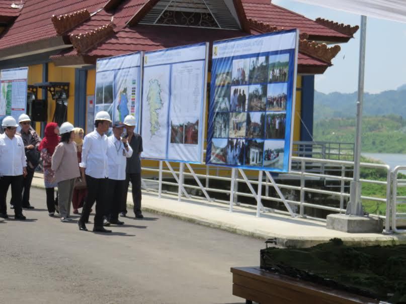 "Waduk Jatigede ini mengairi 90 ribu hektar dan akan mengairi sawah di Indramayu, Majalengka, Cirebon, ini sebelah utara," ujar Jokowi usai meninjau.