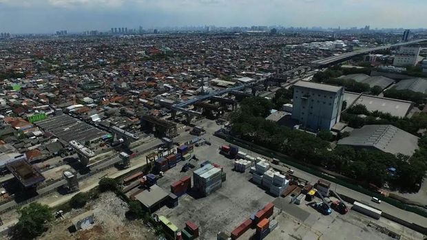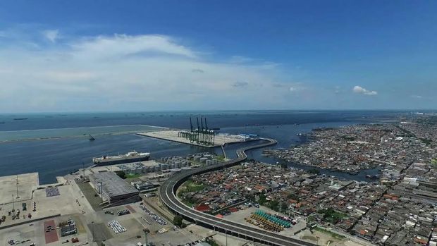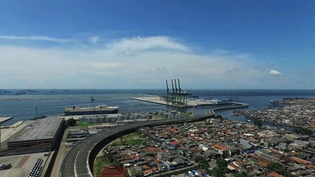 Pekerja juga sedang mempersiapkan area jembatan timbang di area pintu akses New Priok. detikFinance juga sempat menggunakan drone untuk memantau New Priok dari udara. Terlihat berbabagi jenis crane telah terpasang di area NPCT 1. Di sisi berbeda, bangunan megah pelabuhan New Priok, dikelilingi pemukiman padat penduduk yang berdiri di atas lahan Hak Pengelolaan Lahan (HPL) milik PT Pelindo II (Persero).