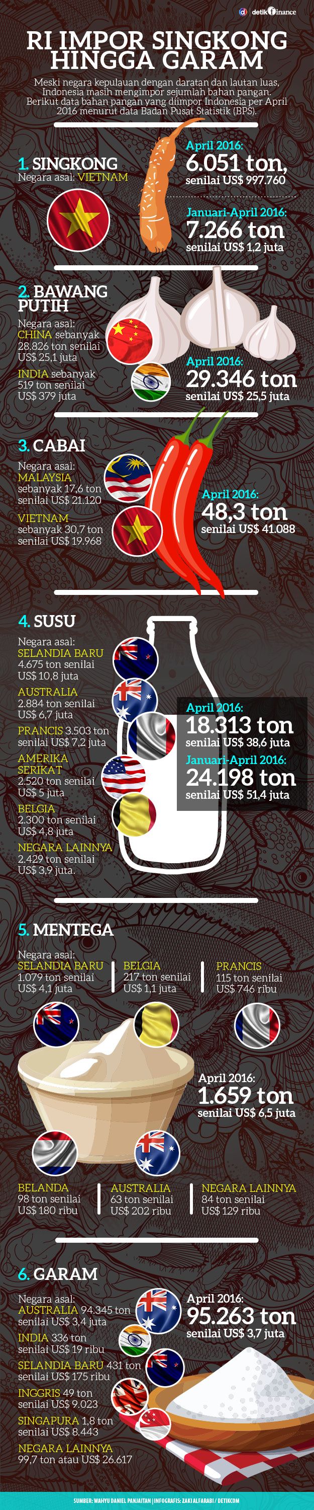Infografis RI Impor Singkong Hingga Garam Wahyu Daniel - detikFinance Rabu, 18 Mei 2016 07:34 WIB Foto: Jhoni Hutapea Jakarta - Punya daratan dan lautan luas, tak menjamin Indonesia mandiri pangan. Saat ini, Indonesia masih mengimpor sejumlah bahan pangan. (wdl/wdl) Infografis Lainnya Infografis Lembaga Penjamin Simpanan Beberkan Hasil Evaluasi 2025 & Rencana Kerja 2026 Infografis Strategi ASN Persiapkan Masa Pensiun Infografis Mengenal Etanol dan Keunggulannya sebagai Bahan Campuran BBM impor pangan