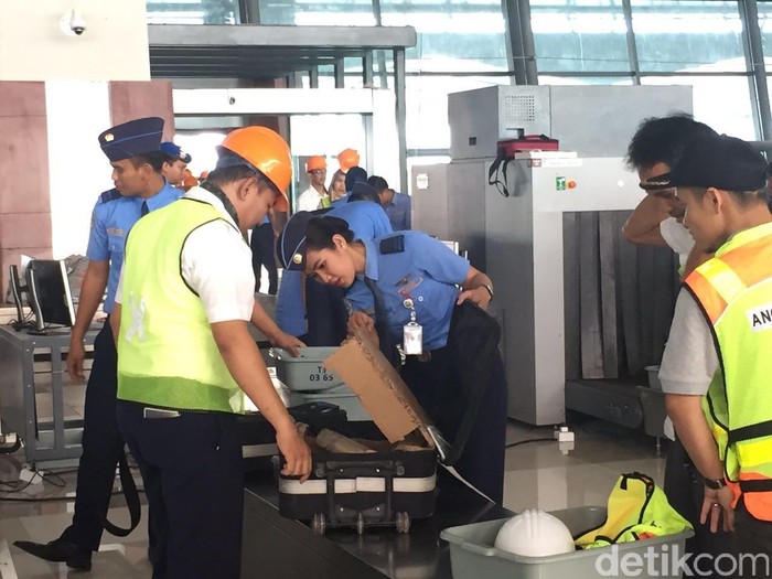 Usai check in, penumpang menuju ruang tunggu pesawat. Proses pemeriksaan kembali dilakukan oleh petugas bandara. Meskipun simulasi, namun semua peraturan tetap dijalankan.
