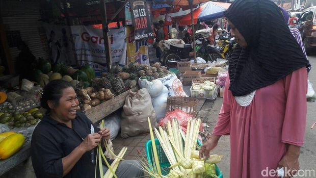 Termasuk pedagang yang menjual ketupat Lebaran. Berdasarkan hasil pantauan detikFinance di Pasar Jembatan Merah, Menteng Pulo, Tebet, Jakarta Selatan, sejumlah pedagang yang berada di pinggiran pasar terlihat menjual bahan baku membuat ketupat ini. Mereka berjualan di tepi jalan dekat pasar.