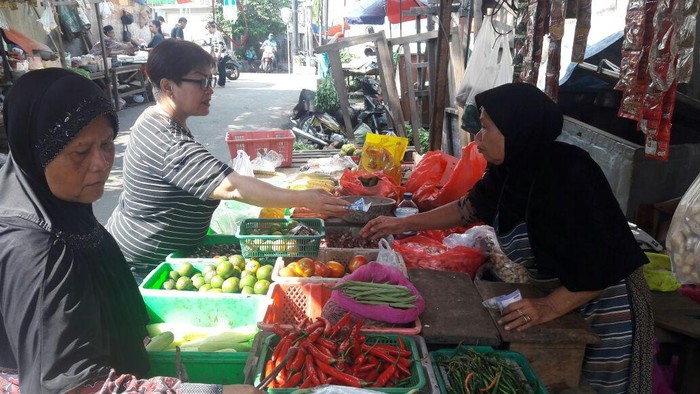 Berikut harga beberapa bahan pokok yang dijual di Pasar Tradisional Jembatan Merah, Menteng Pulo, Jakarta Selatan.