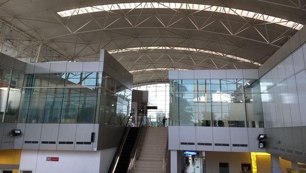 Berdasarkan pantauan detikFinance, bandara ini terlihat modern. Di halaman bandara terdapat taman serta rerumputan, juga kursi-kursi yang berbentuk badak.