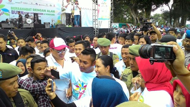 Kedatangan Rini disambut dengan tepukan tangan dan sapaan dari ribuan warga Wonosobo yang hadir di alun-alun. Rini pun langsung menjadi objek selfie. Mulai dari ibu-ibu rumah tangga hingga para pelajar sekolah menengah pertama (SMP) dan sekolah menengah atas (SMA) ingin berfoto bersama Rini.