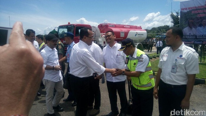 Budi Karya tiba di Tapanuli Tengah pada pukul 12.15 WIB memakai pesawat kalibrasi jenis ATR milik Kementerian Perhubungan (Kemenhub). Mantan Direktur Angkasa Pura II tersebut didampingi oleh Menteri BUMN Rini Soemarno, Dirjen Perkeretaapian Prasetyo Boeditjahjono, dan Dirjen Perhubungan Udara Suprasetyo.