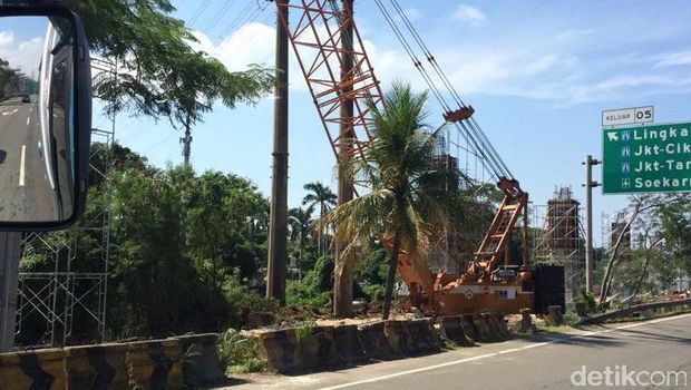 Pantauan detikFinance, tiang-tiang beton tersebut berdiri kokoh, sebagian bahkan sudah berwujud utuh dengan bagian atas penyangga lintasan yang sudah terpasang membuatnya terlihat mirip seperti huruf T. Sesekali terlihat alat berat juga tengah bekerja.