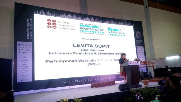 Demikian disampaikan oleh Ketua Umum Perhimpunan Waralaba dan Lisensi Indonesia (WALI), Levita Supit, dalam acara Franchise & License Expo Indonesia (FLEI) 2016, Cafe & Brasserie Indonesia (CBI) 2016, dan Retail Solution Expo 2016, di Jakarta Convention Center Hall B, Jakarta, Jumat (2/9/2016).
