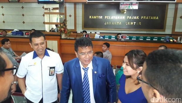 Datang dengan menggunakan mobil Cadillac Escalade bernomor polisi B 666 HOT, Hotman tampak sumringah memasuki gedung KPP Sunter bersama 3 anaknya sekitar pukul 10.20 WIB.