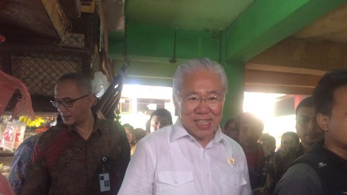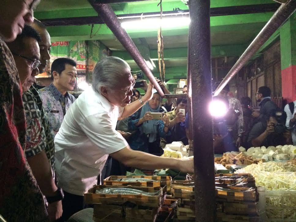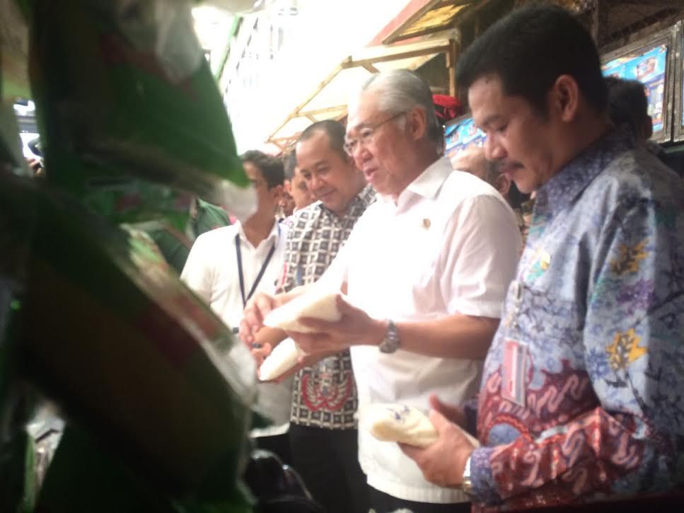 Turut hadir dalam rombongan Dirjen Perdagangan Dalam Negeri Oke Nurwan. Enggar langsung menuju ke los daging, ia langsung mengecek harga-harga daging.