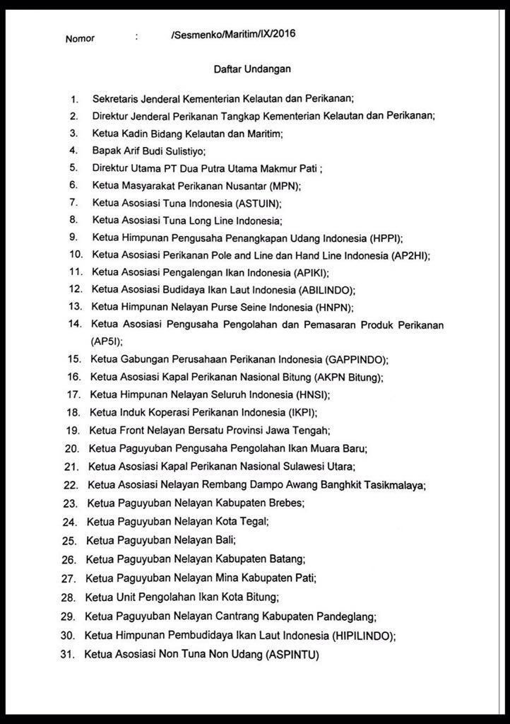 Berikut ini daftar pihak yang diundang dalam rapat tersebut:
