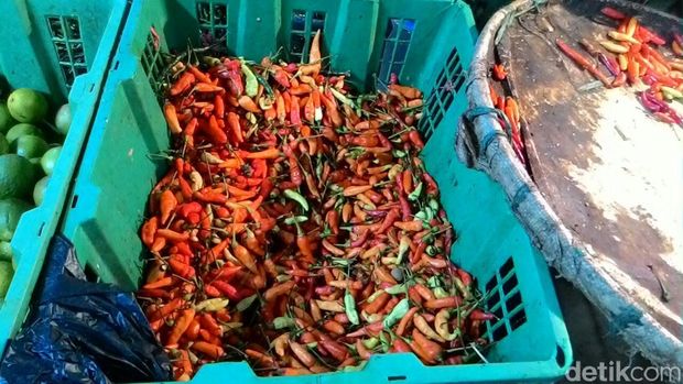 Salah satu pedagang di Pasar Jatinegara mengatakan, cabai merah keriting dan cabai merah besar dijual Rp 30.000/kg, turun dari sebelumnya yang dijual Rp 60.000/kg. Sedangkan cabai rawit merah dijual Rp 25.000/kg.