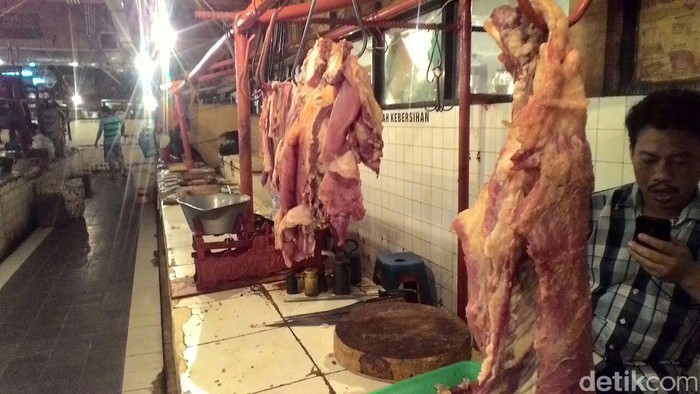 Berdasarkan pantauan detikFinance di los daging Pasar Tebet dan Pasar Minggu, Jakarta Selatan, hari ini harga daging sapi masih stabil tinggi di angka Rp 120.000/kg.