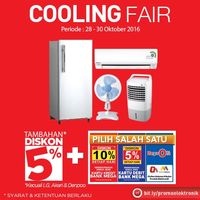"Ada tambahan diskon 5% untuk semua merek kipas angin dan air cooler kecuali air purifier. Juga untuk semua merek kulkas dan AC kecuali LG, Akari, dan Denpoo. Tambahan diskon ini berlaku khusus pada 3 hari mulai dari Jumat, Sabtu, dan Minggu," ujar Satria Hamid selaku Corporate Communication General Manager PT Trans Retail Indonesia kepada detikFinance, Jumat (28/10/2016).