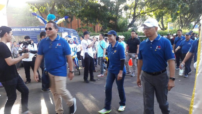 Seperti tidak kenal lelah, satu dari delapan menteri perempuan di kabinet kerja ini kemudian memulai jalan santai, dan berjalan dengan penuh semangat lengkap dengan kostum dan sepatu olahraganya berwarna hijau tosca.