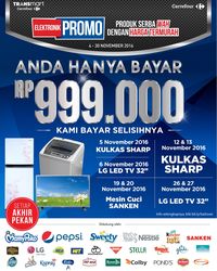 Atau tanggal 6 November 2016 ada penawaran 3 unit LG LED TV 32" LH510D D-HD (dari harga normal Rp 2.930.000) di Carrefour: Bekasi Square, Ciledug, ITC BSD, ITC Permata Hijau, dan Emporium Pluit Mall.