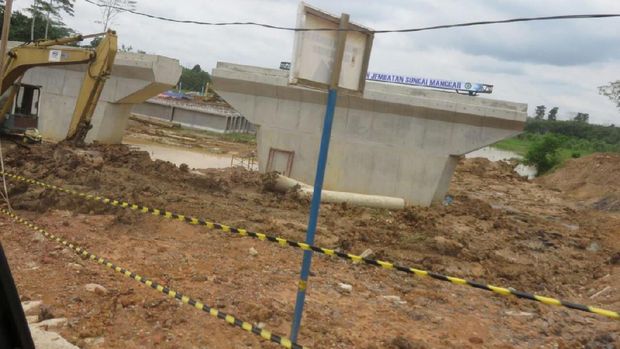 Tampak pilar-pilar penyangga tiang jembatan sudah mulai berdiri.