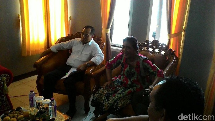 "Tadi saya mandi dulu," kata Susi kepada Budi di Bandara Nusawiru, Pangandaran, Sabtu (12/11/2016).