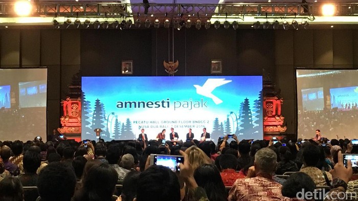 Jokowi sempat singgah ke hotel di Nusa Dua sejenak. Tak lama, Jokowi langsung mendatangi Gedung Bali Nusa Dua Convention Center (BNDCC) 2, Nusa Dua Bali. Acara sosialisasi tax amnesty digelar di ruang Pecatu Hall.