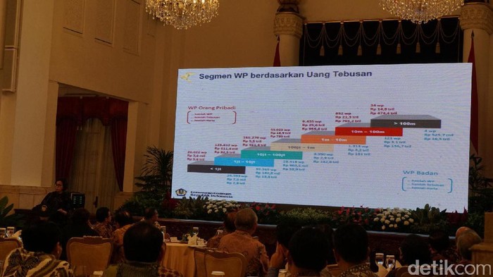 Rinciannya, 34 orang wajib pajak pribadi dan 4 wajib pajak badan usaha. Menurut Sri Mulyani, para wajib pajak besar itu membayar uang tebusan tax amnesty di atas Rp 100 miliar.