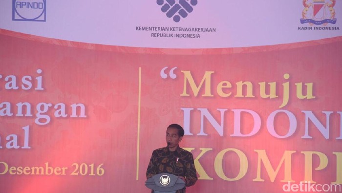 "Tadi perasaan waktu deklarasi yang berdiri banyak. Tapi ini kok jadi sedikit," sindir Jokowi, dalam acara Deklarasi Pemagangan Nasional, Jumat (23/12/2016)