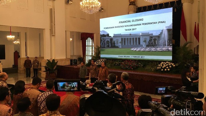 "Kalau kita tergantung hanya kepada APBN, tidak mungkin pembangunan akan bisa cepat. Saya menghargai terobosan-terobosan seperti mekanisme pembiayaan investasi non anggaran pemerintah atau PINA yang melengkapi skema pembiayaan infrastruktur kita," ujar Presiden Joko Widodo (Jokowi) dalam acara Financial Closing Pembiayaan Investasi Non Anggaran Pemerintah (PINA) dan Launching PPP Book 2017 di Istana Negara, Jakarta, Jumat (17/2/2017).