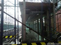 Tampak pula peron sudah terbangun sebagian yang dilengkapi pintu otomatis berpapis kaca.
