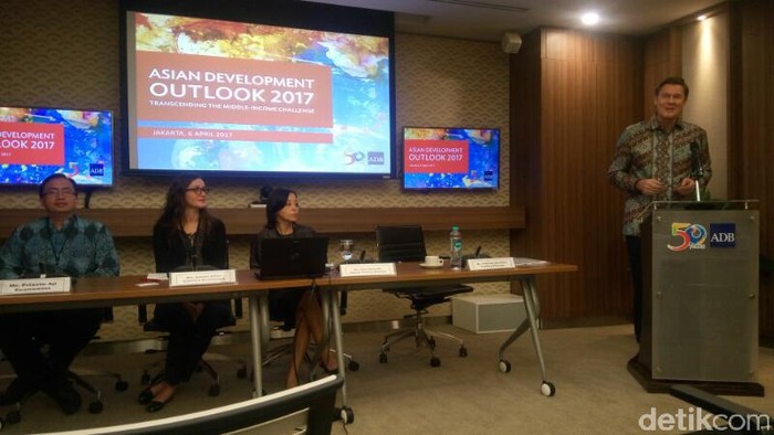 "Pertumbuhan ekonomi China moderately turun 2017-2018. Tahun lalu 6,7%, 6,5% di 2017, dan 6,2% di 2018," jelas Deputy Country Director ADB Indonesia Sona Shrestha di Kantor ADB Indonesia, The Plaza, Jakarta Pusat, Kamis (6/4/2017).