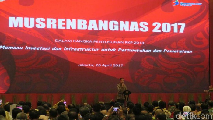 Demikian disampaikan Presiden Joko Widodo (Jokowi) saat membuka Musrenbangnas 2017 di Hotel Bidakara, Jakarta Selatan, Rabu (26/4/2017).