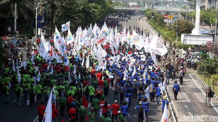 Jakarta - Ratusan ribu buruh di Indonesia hari ini turun ke jalan memperingati Hari Buruh Internasional atau May Day. Beberapa tuntutan utamanya sama dengan tahun-tahun sebelumnya, salah satunya menyuarakan penghapusan tenaga kerja alih daya (outsourcing).