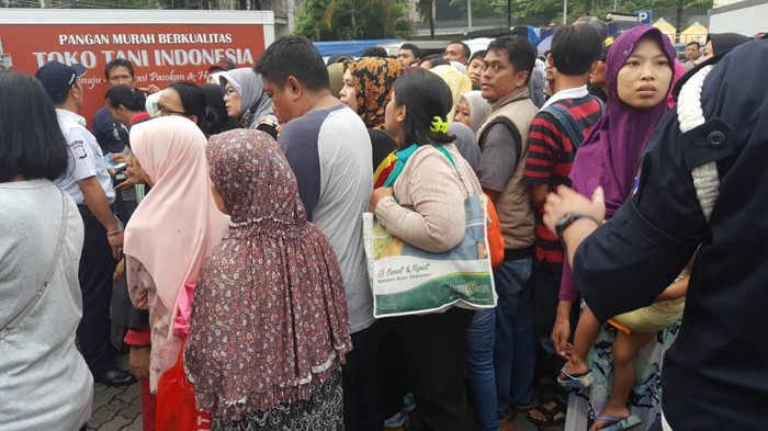 TTI juga hadir Car Free Day Sarinah Thamrin, Minggu (11/6/2017) pagi. Kawasan ini pun langsung dipenuhi masyarakat. Bahkan sebelum bazar dibuka, terlihat banyak orang yang berkumpul demi menyerbu pangan murah ini.