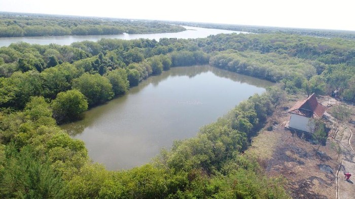 Pulau reklamasi hasil timbunan lumpur pengerukan muara Sungai Porong ini memiliki luas total 94,00 hektar (Ha). Di dalam lahan reklamasi tersebut juga dibangun Tambak Wanamina seluas 4,90 Ha yang tujuan awalnya adalah untuk memantau perilaku biota ikan, apakah ada pengaruh lumpur terhadap kehidupan ikan di muara, dan berdasarkan hasil pengamatan selama 3 tahun berjalan, ikan tetap dapat hidup dengan baik bahkan telah berhasil memproduksi ikan bandeng. Sedangkan sisa lahan seluas 89,10 Ha belum dimanfaatkan secara optimal.