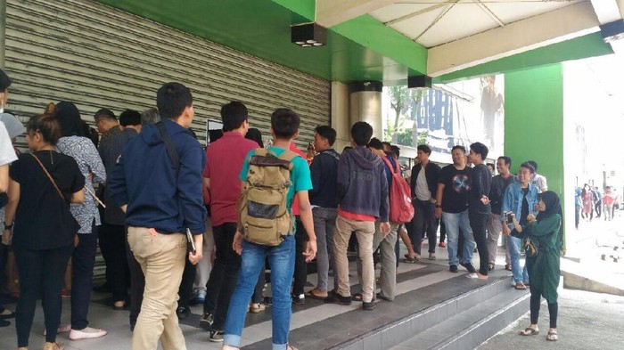 Berdasarkan pantauan detikFinance sejak pukul 09.30 WIB, para pengunjung sudah antre di depan gerai Lotus. Ada sekitar 50 orang yang duduk di lantai hingga berdiri di depan toko.