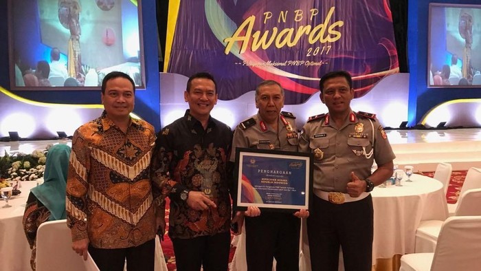 "Polri menerima penghargaan Pengelolaan PNBP Terbaik I pada Kategori PNBP di Atas Rp 1 Triliun," kata Kabag Penum Divisi Humas Polri, Kombes Martinus Sitompul, dalam rilisnya, Sabtu (1/12/2017).