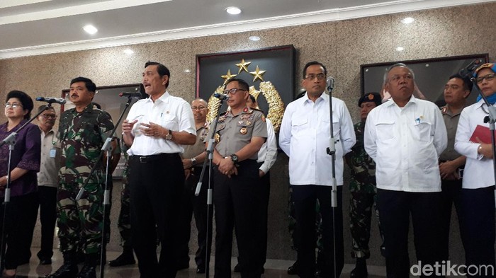 Demikian diungkapkan Menko bidang Kemaritiman Luhut Binsar Pandjaitan usai rapat kooordinasi Pengamanan Natal 2017 dan Tahun Baru 2018 di Mabes Polri, Jalan Trunojoyo, Kebayoran Baru, Jakarta Selatan, Senin (18/12/2017).