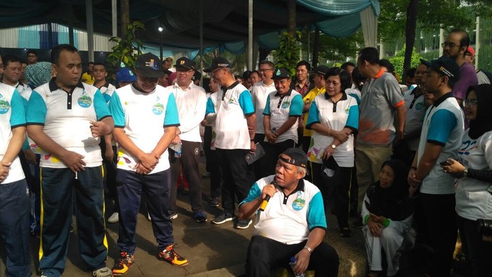 Dari pantauan detikFinance, Jumat (22/3/2018), Basuki sudah ada di lokasi acara di halaman Kementerian PUPR sejak pukul 07.30 WIB. Dalam acara tersebut, terlihat Basuki menjadi sasaran selfie PNS. Sesekali, Basuki mengacungkan jari metal saat diajak selfie oleh PNS.