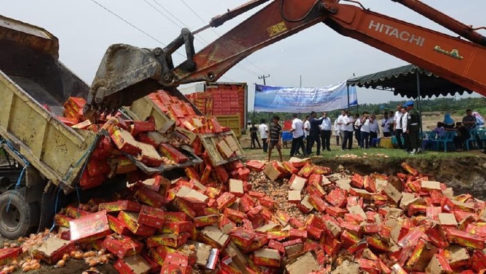 Pemusnahan terhadap kurang lebih 8.721 karton jeruk mandarin dan 1.002 karton apel asal China ini dilaksanakan sesuai dengan ketentuan dalam Permendag Nomor 16 Tahun 2018 tentang Perubahan Ketiga atas Permendag No. 30/M-DAG/PER/5/2017 tentang Ketentuan Impor Produk Hortikultura yang menyatakan bahwa produk hortikultura yang diimpor tidak sesuai ketentuan wajib ditarik dari peredaran dan dimusnahkan.
