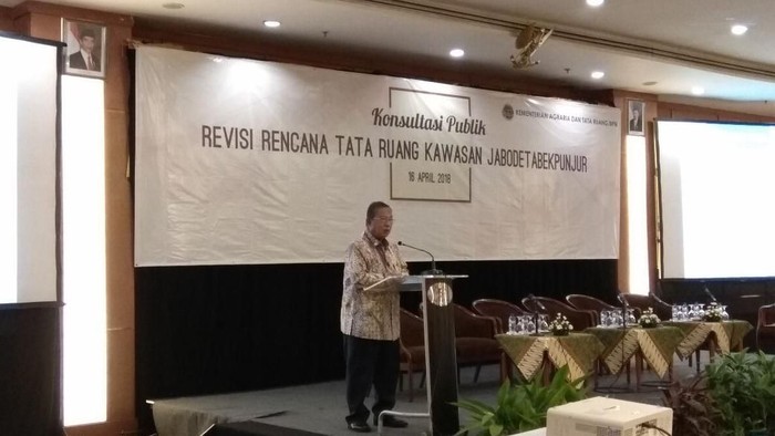 "Perpres 54/2008 tentang penataan ruang kawasan Jabodetabekpunjur pada hari ini dilakukan konsultasi publik," kata Darmin saat memberi sambutan di Hotel Grand Sahid Jaya, Jakarta, Senin (16/4/2018).