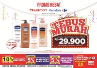 Khusus pada akhir pekan ini ada tebus murah Nutella Spread B 350 gr seharga Rp 29.900/jar dari harga normal Rp 68.000/kotak. Ada juga tebus murah Vaseline Hand Body Lotion 400 ml dengan harga Rp 29.900/pouch dari harga normal Rp 61.900/pouch.