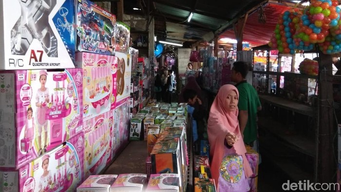 Di pasar ini menjual bermacam-macam mainan, mulai dari mobil-mobilan, robot-robotan, hingga boneka berbagai karakter animasi.