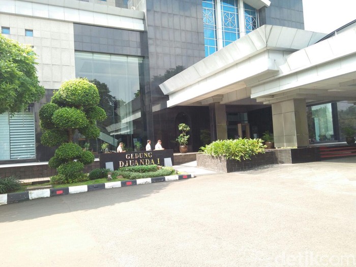 Mengenakan batik warna gelap, Perry langsung masuk ke dalam gedung Kementerian Keuangan.