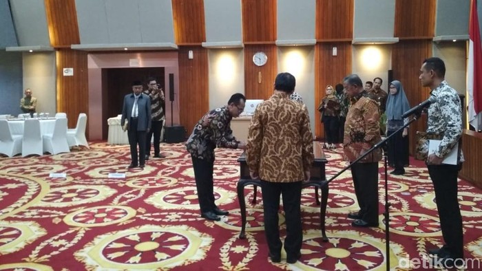 "Apakah anda bersedia diambil sumpah?" kata Darmin di Graha Sawala Kementerian Koordinator Bidang Perekonomian, Jakarta Pusat, Jumat (13/7/2018).