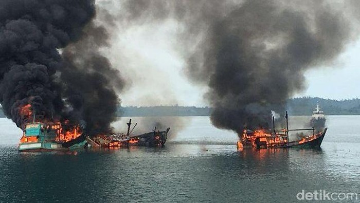 "Kapal yang besar ditenggelamkan, kalau yang kecil di darat dimusnahkan dengan dipotong-potong dan dibakar," ujar Susi.