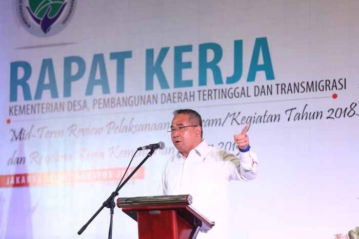 Hal tersebut diungkapkan saat memberikan arahan kepada para pegawai di lingkungan Kemendes PDTT pada Rapat Kerja Kemendes PDTT 2018 di El Royale Hotel Kelapa Gading Jakarta, Kamis (23/8/2018).