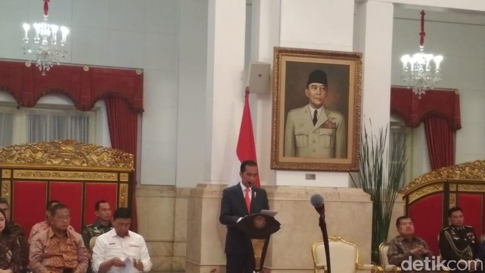"Di awal tahun 2019 saya ucapkan terima kasih kepada seluruh menteri kabinet kerja, Kapolri, Panglima, Atas kerja sama, kerja bersama kita, di tahun 2018," kata Jokowi di Istana Negara, Jakarta Pusat, Senin (7/1/2019).