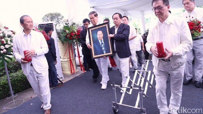 Pemakaman Pendiri Sinar Mas itu dihadiri oleh ratusan orang. Keluarga dan pelayat kompak mengenakan setelan putih-putih. Di sepanjang jalan pun, berderet karangan bunga ucapan bela sungkawa dari berbagai pihak.