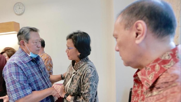 Dikutip dari akun Instagram @smindrawati, Jumat (8/3/2019), kedatangan Sri Mulyani, Chatib Basri, dan Agus Marto disambut oleh Mantan Presiden ke-6 Susilo Bambang Yudhoyono (SBY) yang didampingi oleh kedua anaknya Agus Harimurti Yudhoyono dan Ibas Yudhoyono.