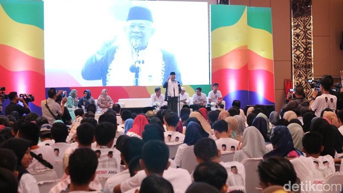Wapres terpilih Kyai Ma'ruf Amin di depan Milenial/Foto: Ma'ruf Amin didukung milenial (Lisye-detikcom)